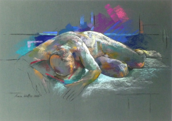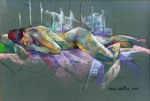 As you can see from my life and portrait work, I have evolved a way of portraying the human form using line supported by colour, almost like a scaffolding